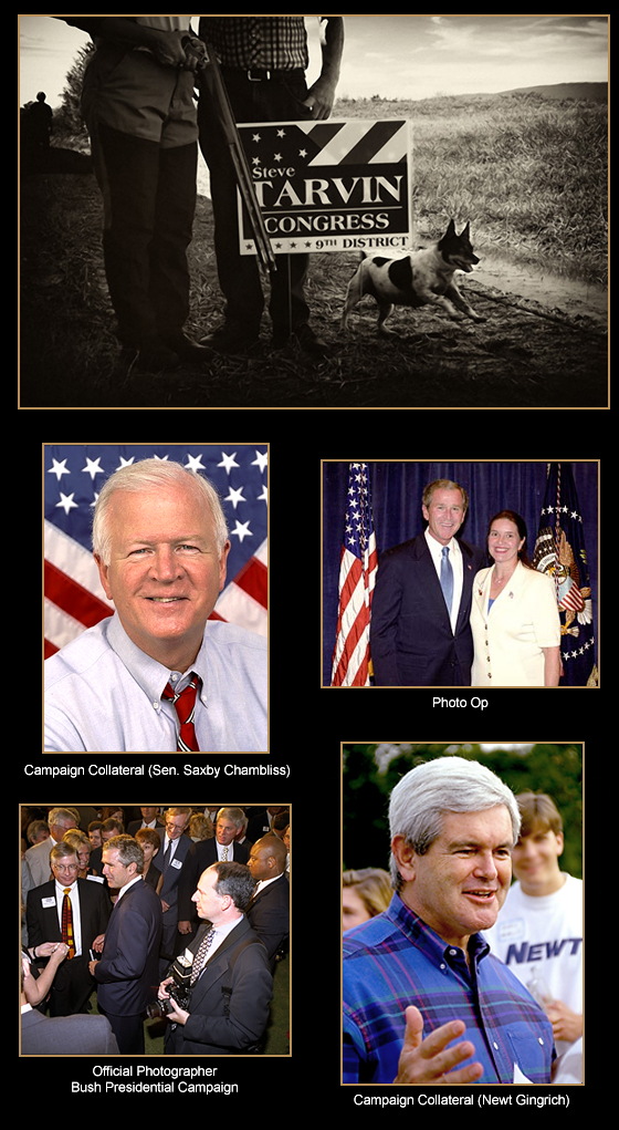 Photo Ops , Campaign Documentaion, Portraiture, Marketing Collateral, Photo Journalism Bill served as the Official Photographer for the 1996 and 2000 Republican National Conventions. |